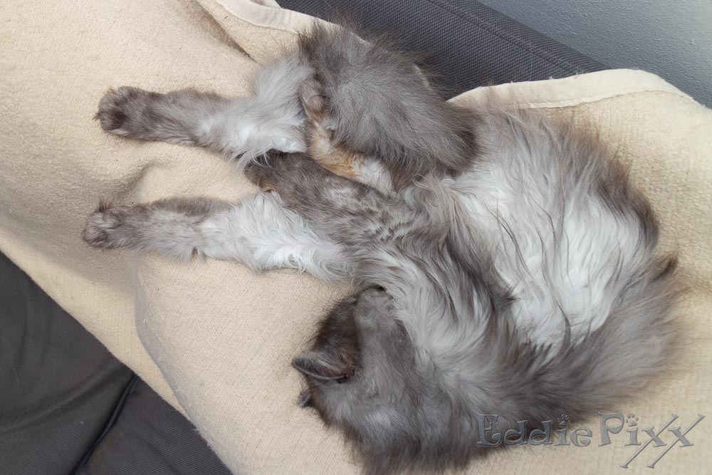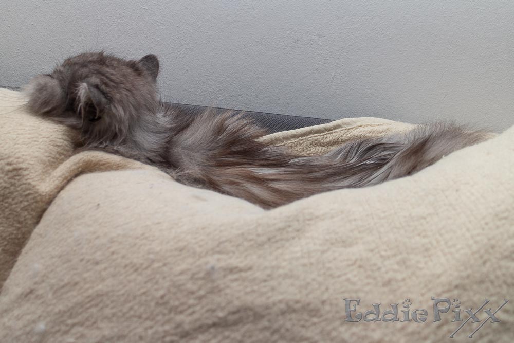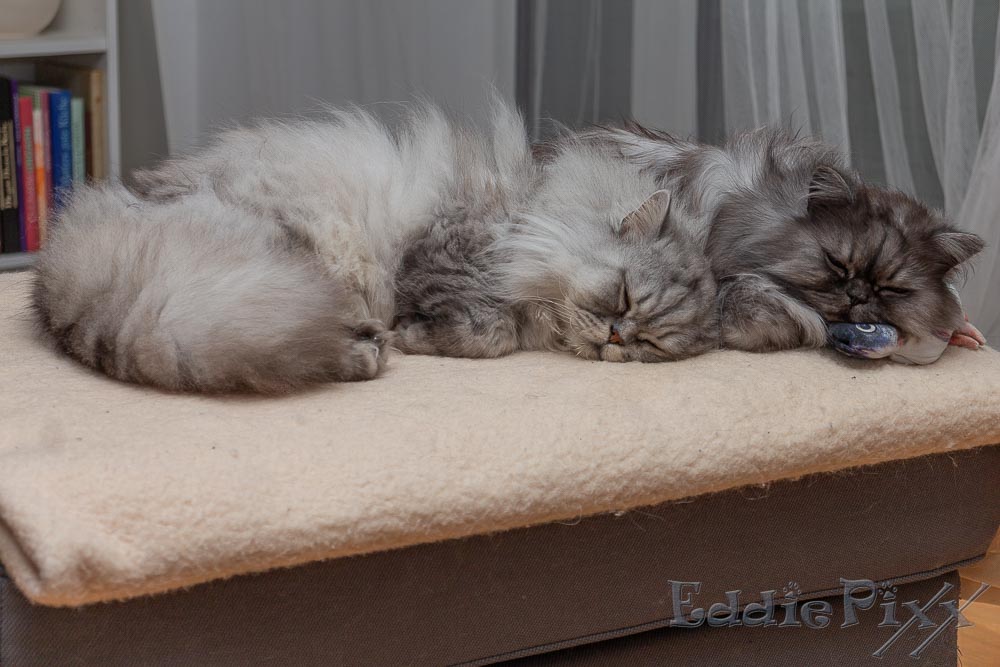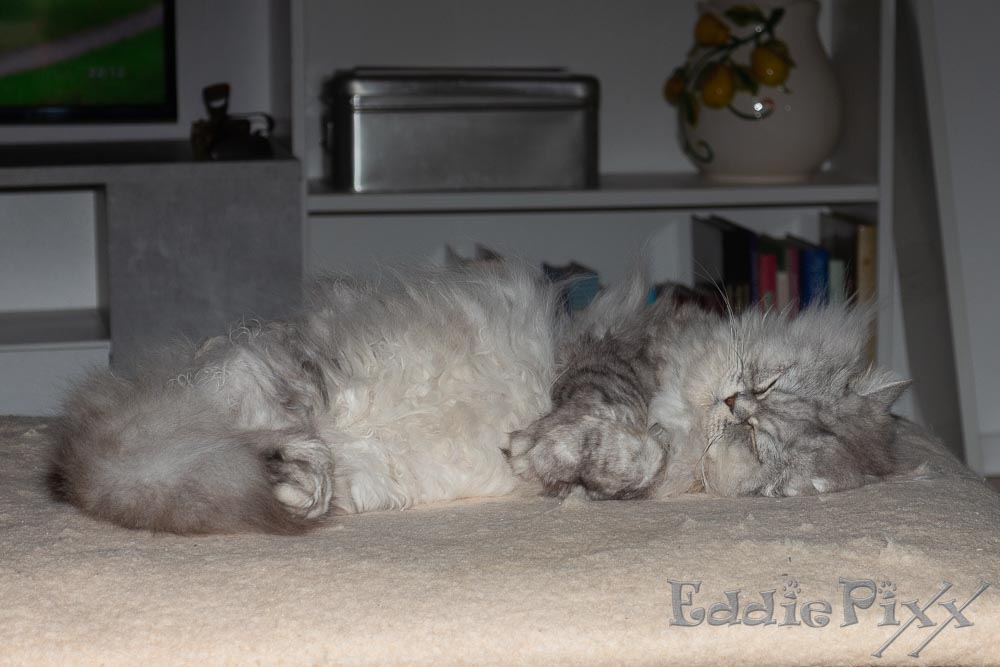 Da loben wir uns doch sehr unsere Fußbodenheizung im Bad – hier könnten wir den ganzen Tag verbringen, auch wenn Pixx behauptet, dass es auf dem Heizkörper im Wohnzimmer ebenfalls ganz angenehm sei. Ich bin da eher skeptisch, weil ich mir nicht vorstellen kann, dass man darauf auch schön liegen kann, wie beispielsweise auf der Sofalehne.